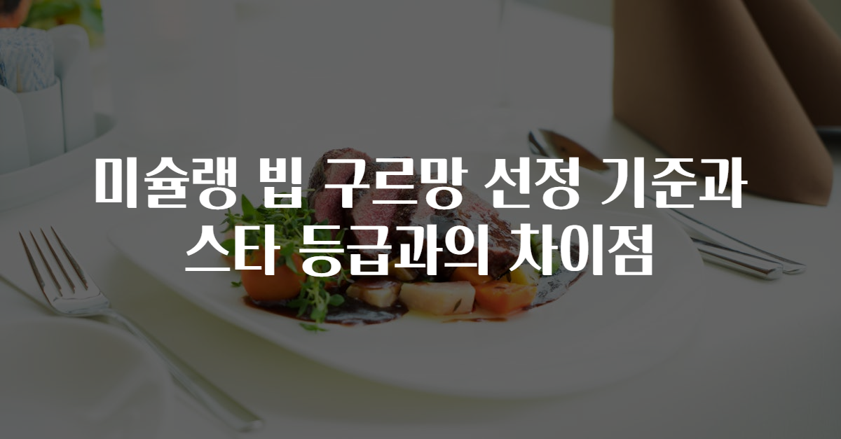미슐랭 가이드에서 빕 구르망 선정 기준은 고객에게 품질 좋은 음식을 합리적인 가격에 제공하는 식당을 추천하는 데 초점을 맞추고 있습니다. 한편, 미슐랭 스타 등급은 더 상위 개념으로, 미슐랭이 인정하는 특별한 요리와 경험을 제공하는 식당에 주어지는 명예로운 평가입니다. 이 글에서는 빕 구르망의 선정 기준과 스타 등급과의 차이점에 대해 자세히 살펴보겠습니다.