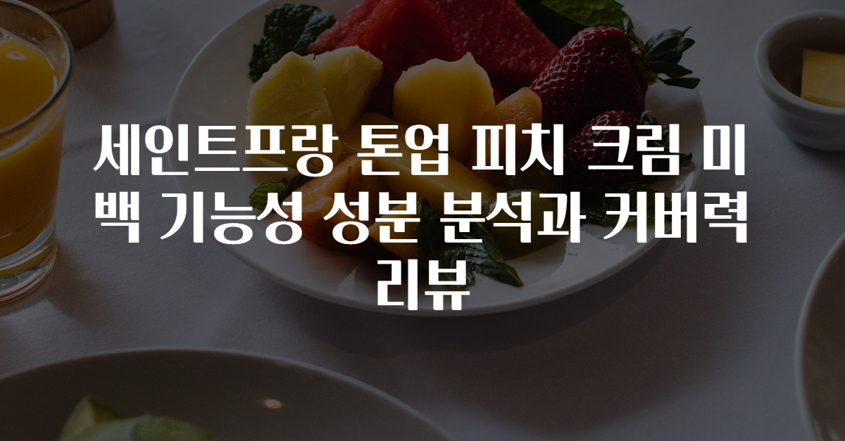 세인트프랑 톤업 피치 크림은 미백 기능성 성분이 가득한 제품으로, 피부를 화사하게 밝혀주는 동시에 커버력까지 제공하는 다재다능한 아이템입니다. 이번 포스트에서는 톤업 피치 크림의 성분 분석 및 효과, 그리고 실제 사용 후 커버력에 대한 리뷰를 자세히 살펴보겠습니다.