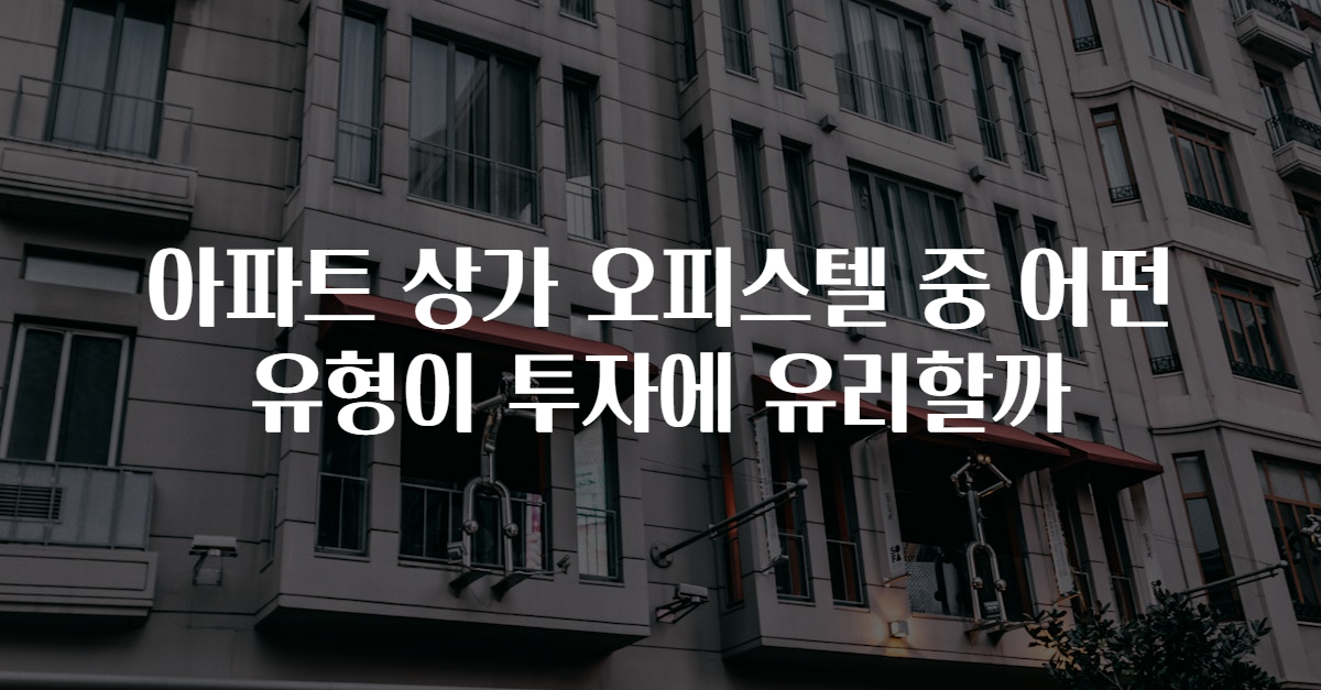 아파트, 상가, 오피스텔은 각각 장단점이 있어 투자자의 목적에 따라 선택 기준이 달라질 수 있습니다. 본 글에서는 이 세 가지 유형의 부동산이 제공하는 투자 기회를 분석하고, 어떤 특성이 투자에 유리한지를 비교합니다.