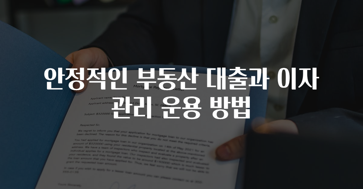 부동산 대출을 안정적으로 관리하는 것은 장기적으로 재정적 성공을 거두는 데 중요한 요소입니다. 신중한 선택과 철저한 계획을 통해 안정적인 대출을 확보하고 이자를 관리함으로써 경제적 자립을 이루실 수 있습니다.