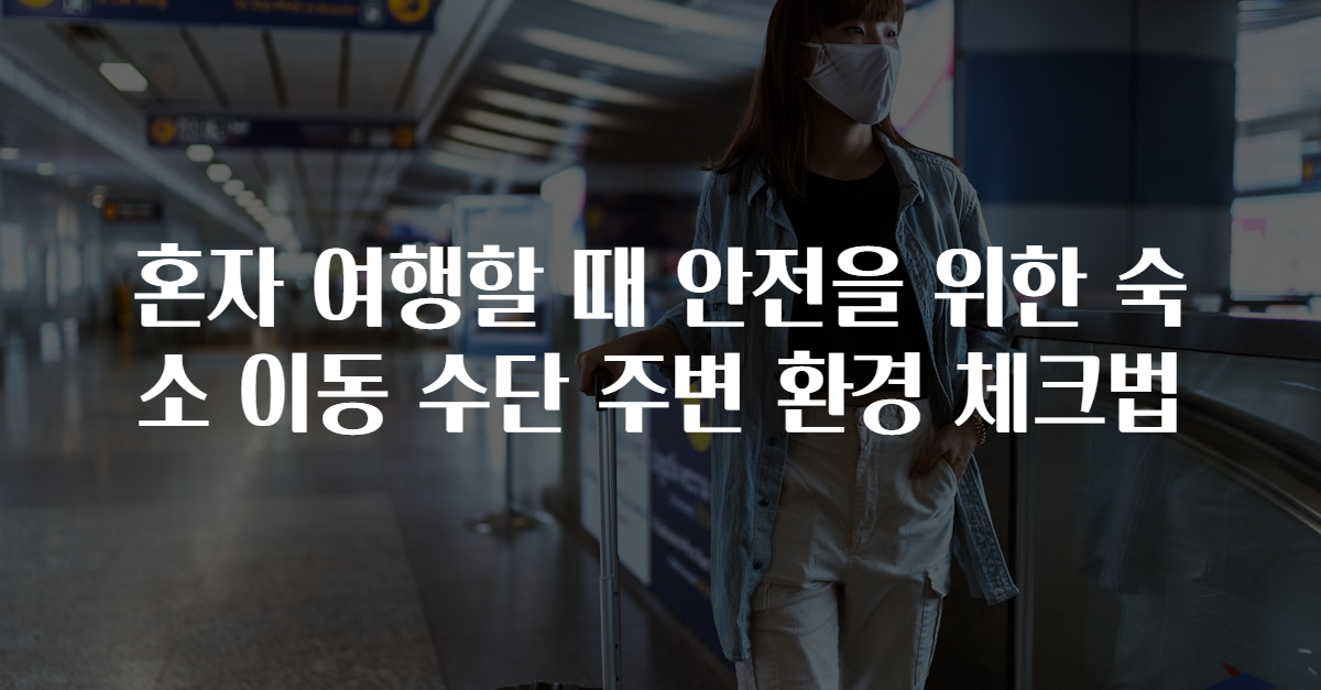 혼자 여행할 때 안전을 위한 숙소 이동 수단 주변 환경 체크법에 대해 알아보겠습니다. 혼자 여행은 자유롭고 값진 경험이지만, 안전을 고려하는 것이 무엇보다 중요합니다. 숙소 선정부터 이동 수단, 주변 환경 체크 방법에 이르기까지, 안전한 여행을 하기 위한 여러 가지 팁을 제시하겠습니다.