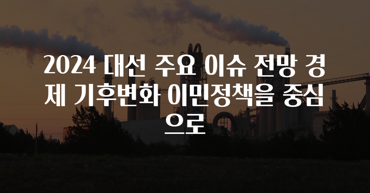 2024년 대선에서 가장 중요한 이슈는 경제, 기후변화, 이민정책 등으로 예상된다. 각 정당은 이 문제에 대해 다른 접근 방식을 보이고 있으며, 이는 유권자들의 선택에도 큰 영향을 미칠 것으로 보인다. 특히 경제적 불균형, 기후 위기의 심화, 이민 정책의 변화는 각 후보의 정책 제안에 중요한 요소로 작용할 것이다.
