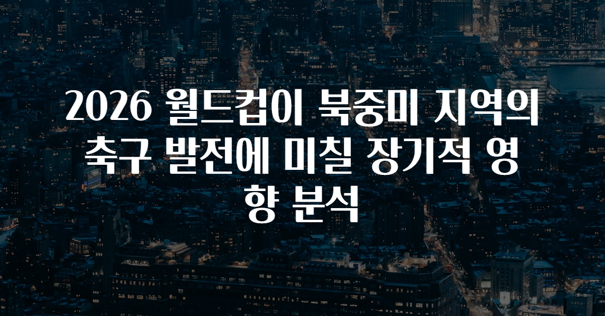 2026 월드컵은 단순히 스포츠 이벤트에 그치지 않고, 북중미 지역의 축구 전반에 걸쳐 깊은 영향을 미칠 것으로 예상된다. 글로벌 무대에서 이 지역이 조명받게 되며, 장기적으로는 세계 축구의 발전에도 기여하게 될 것이다.