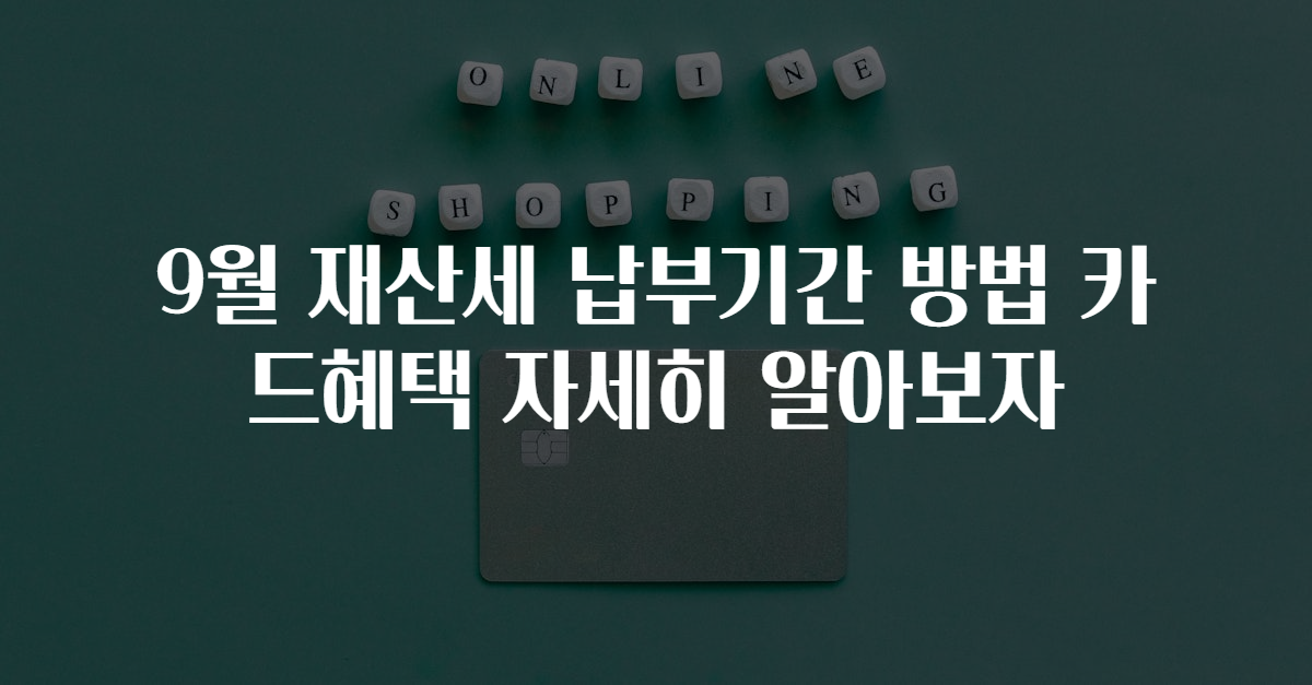 9월은 재산세 납부의 중요한 시기로, 이 시기에 재산세를 정확하게 납부하는 것이 필요합니다. 이번 글에서는 9월 재산세의 납부기간, 방법, 그리고 카드로 납부 시의 혜택에 대해 자세히 알아보겠습니다. 재산세 납부를 위한 준비와 유용한 정보들을 통해 더욱 스마트하게 세금을 관리할 수 있도록 하겠습니다.