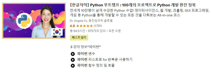 >> 유데미 파이썬 강의 목록 보기 <<